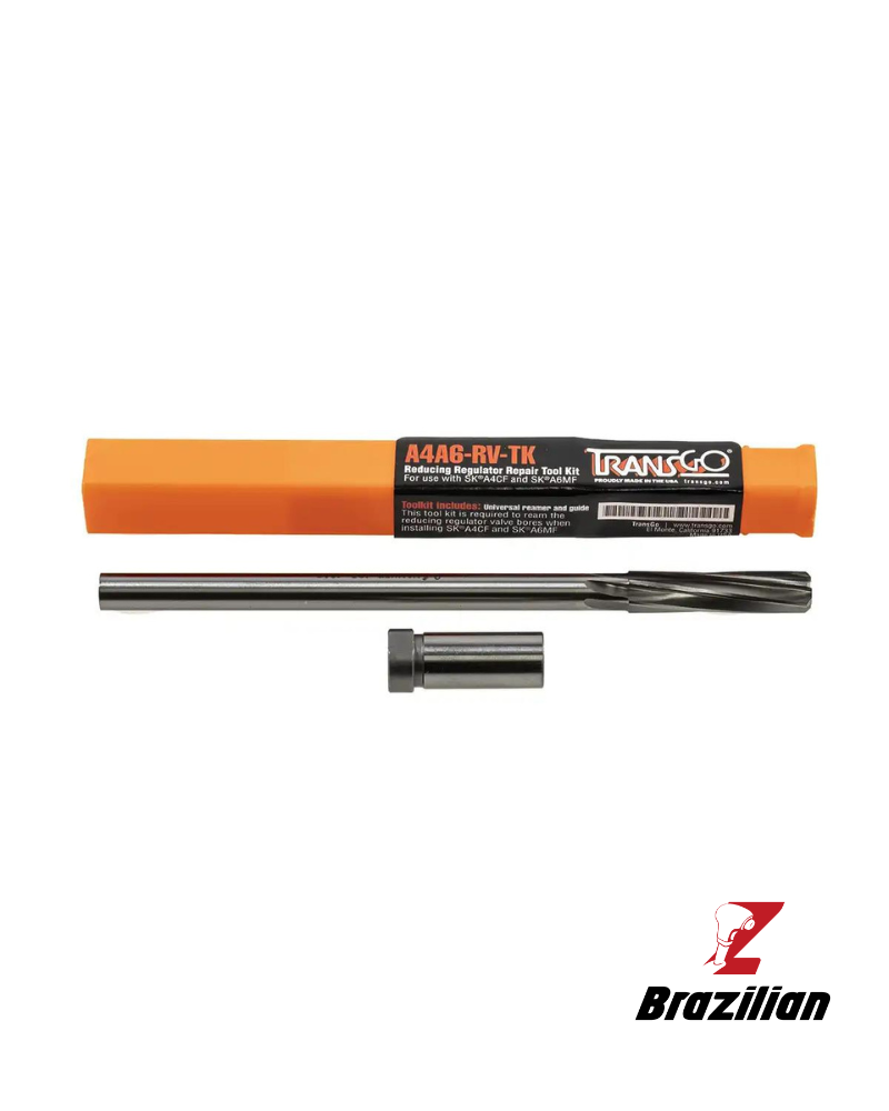 Este kit de ferramentas de alargamento e guia é necessário para superdimensionar os furos do regulador de redução ao usar o kit de reparo do corpo de válvula TransGo SHIFT KIT® SK A6MF ou SK A4CF para veículos Hyundai e Kia com A4CF1/2, A6MF1/2, A6GF1, A6LF1/2/3, bem como veículos Jeep 2013-2016 e Dodge 2012-2016 com a transmissão 6F24.